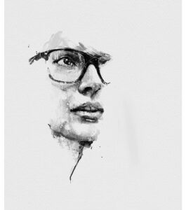 The choice of abstraction within the glasses, where blurred geometric patterns replace clarity, introduces a modern, almost futuristic touch to a figure rooted in historical significance. This suggests a reinterpretation of Gandhi’s vision, positioning him as a timeless icon whose ideals remain relevant despite the distance of time. The sharp lines juxtaposed with the softer splatters and smudges across the canvas further blur the boundary between past and present, tradition and innovation.